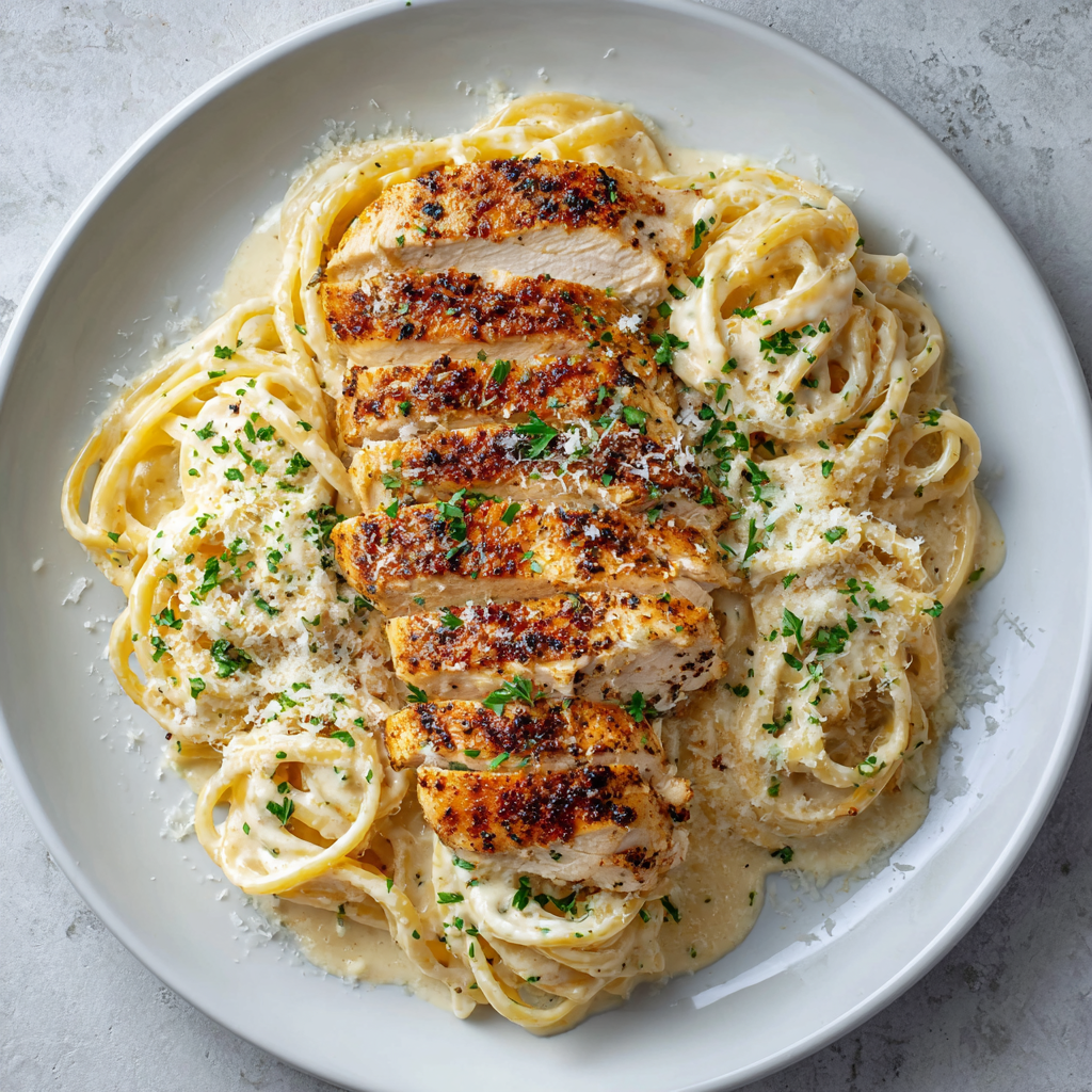 chicken breast, penne noodles, low fat milk, light cream cheese, parmesan, mozzarella, italian herbs, parsley, garlic powder, onion powder, garlic, garlic powder, paprika, olive oil