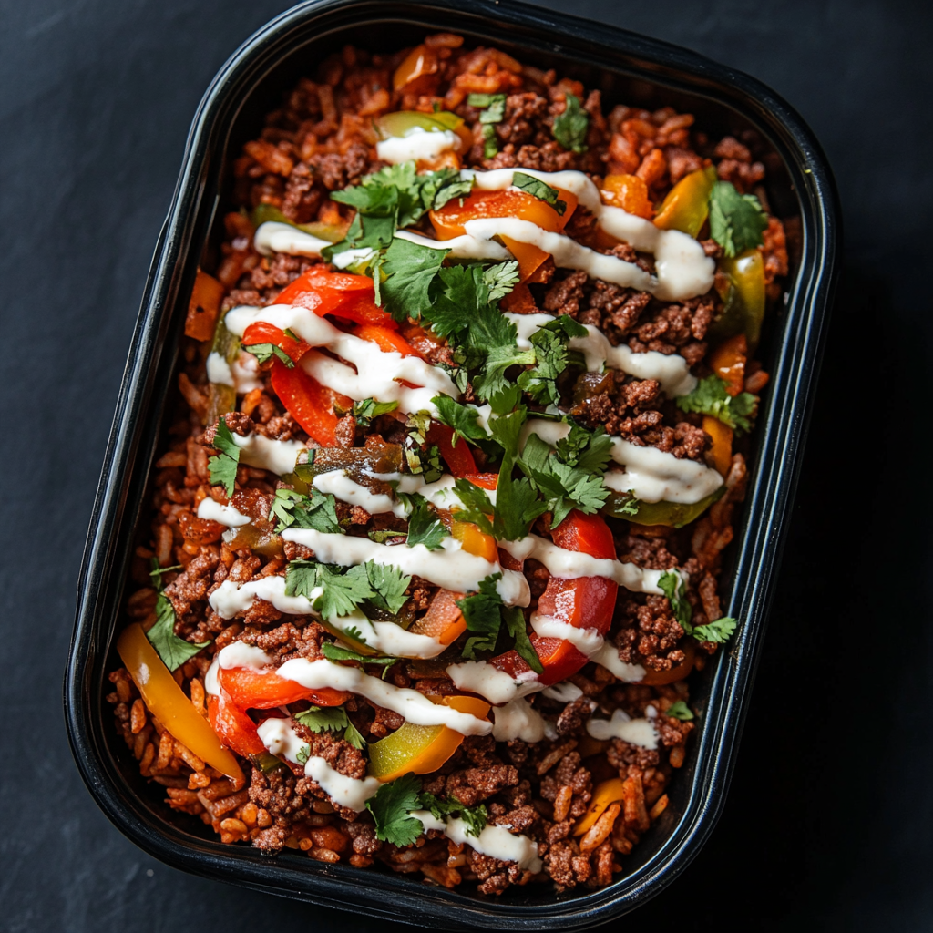 ground turkey, white rice, fajita bell peppers, lime, tomato bouillon, mayonnaise, lime, chipotle pepper, tomatoes, garlic, onion, cilantro, tajin, paprika, salt, cumin, pepper