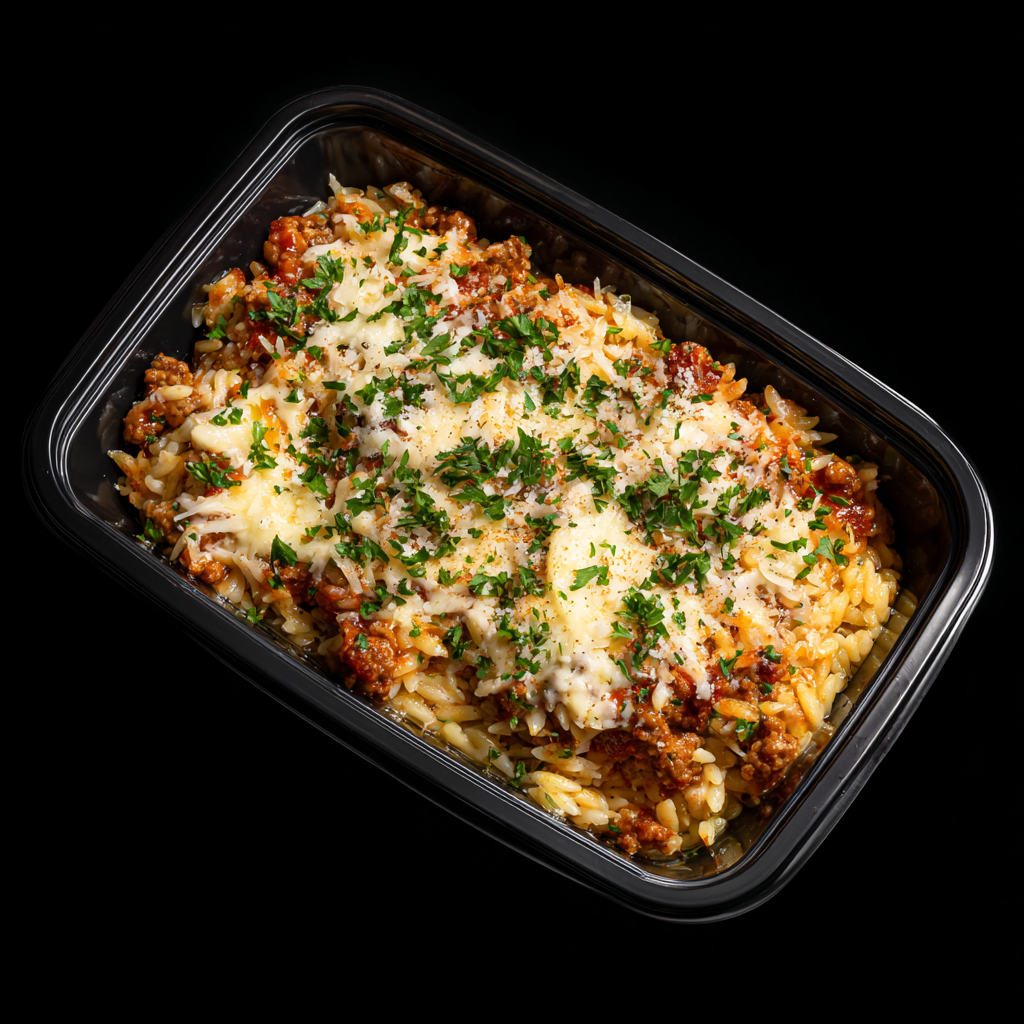 ground turkey, orzo, avocado oil, zucchini, onion, tomato, oregano, tomato paste, parmesan cheese, parsley, salt, garlic, onion powder, black pepper