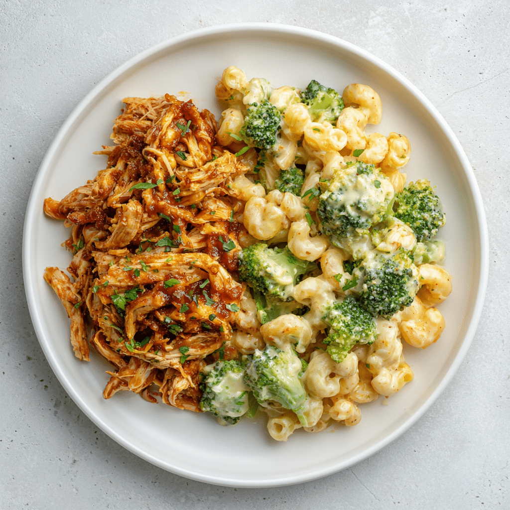 chicken, macaroni, cheese, flour, butter, broccoli, garlic, cheddar cheese, BBQ, chives, salt, avocado oil, onion powder, garlic powder, black pepper, paprika