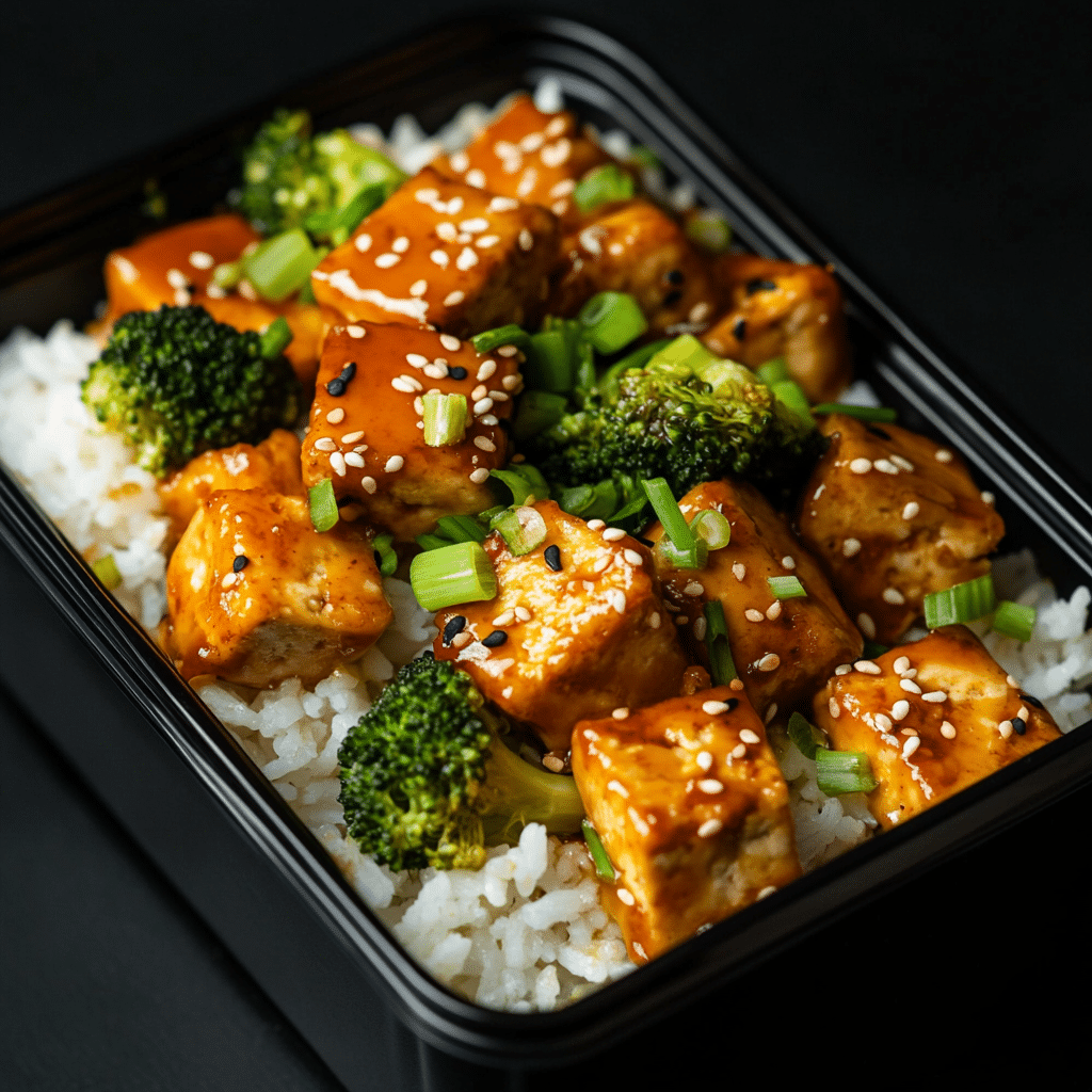 tofu, white rice, broccoli, sesame seeds, green onion, garlic, ginger paste, tahini, miso paste, honey, soy sauce, garlic powder, avocado oil