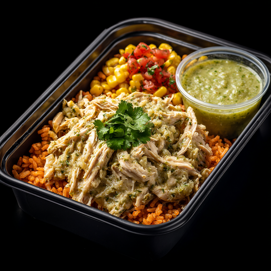 chicken, white rice, tomato bullion, corn, tomato, bell pepper, tomatillo, cilantro, garlic, bay leaves, garlic, cotija cheese, paprika, lime, salt, pepper